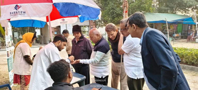 A Health Check-up camp was organised on 26.01.26 at Central Park ground, Salt Lake with the morning walkers of the locality with the aim of promoting wellness and the importance of preventive healthcare. General health check-ups (height, weight, BMI, blood pressure, blood sugar) were provided during the camp. The total number of attendees were 42 who benefited from the services.