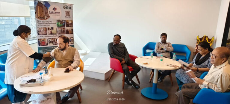 A free health check-up camp was organized by PARKVIEW SUPERSPECIALITY HOSPITAL on November 27, 2025, in association with TEGA McNALLY MINERALS, Sector-V, Saltlake, with the aim of promoting wellness and the importance of preventive healthcare among IT professionals, Technical staffs, and the other officials”. General health check-ups (height, weight, BMI, blood pressure, blood sugar & ECG) provided during the camp along with the doctor’s consultation by renowned physician Dr.Saurav Maitra. The total number of attendees were 76 who benefited from the services. The initiative & the modus operandi of the camp was highly appreciated by all including the CEO & GM of the organisation.